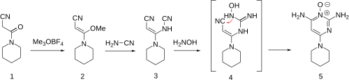 - ^ McCall JM, TenBrink RE, Ursprung JJ (October 1975). "A new approach to triaminopyrimidine n-oxides". The Journal of Organic Chemistry. 40 (22): 3304–3306. doi:10.1021/jo00910a040. PMID 1185310.