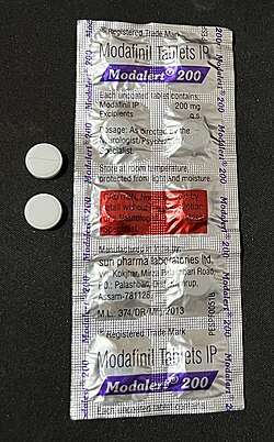 Modafinil is commercially available in 100 mg and 200 mg oral tablet forms.[7] Additionally, it is offered as the (R)-enantiomer, known as armodafinil, and as a prodrug named adrafinil.[87]