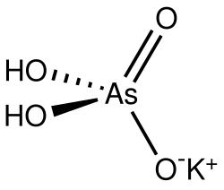 Monopotassium arsenate is the inorganic compound with the formula KH2AsO4. A white solid, this salt is used to prepared other arsenic-containing compounds, mainly pesticides. It is prepared by calcining arsenic oxide and potassium nitrate, followed by extraction with water.[1]