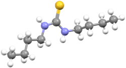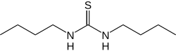 N,N′-Di-n-butylthiourea is an organic compound with the formula S=C(N(H)Bu)2 (Bu = butyl). A symmetrical N,N′-dialkyl thiourea derivative, it is a white solid. Like other thiourea derivatives, it features a planar core. The C=S bond distance is 1.712(2) Å, while C−N distances are in range of 1.33 to 1.46 Å.[1] Molecules of this compound exhibit syn-anti conformation.[2]