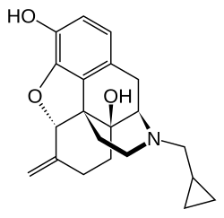- ^ Kyhl LE, Li S, Faerch KU, Soegaard B, Larsen F, Areberg J (February 2016). "Population pharmacokinetics of nalmefene in healthy subjects and its relation to μ-opioid receptor occupancy". British Journal of Clinical Pharmacology. 81 (2). Wiley: 290–300. doi:10.1111/bcp.12805. PMC 4833148. PMID 26483076.