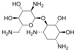 - ^ Zimmermann L, Bussière A, Ouberai M, Baussanne I, Jolivalt C, Mingeot-Leclercq MP, et al. (October 2013). "Tuning the antibacterial activity of amphiphilic neamine derivatives and comparison to paromamine homologues". Journal of Medicinal Chemistry. 56 (19): 7691–7705. doi:10.1021/jm401148j. PMID 24083676.