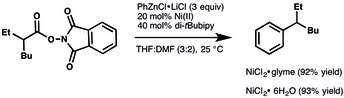 - ^ Cornella, Josep; Edwards, Jacob T.; Qin, Tian; Kawamura, Shuhei; Wang, Jie; Pan, Chung-Mao; Gianatassio, Ryan; Schmidt, Michael; Eastgate, Martin D. (2016-02-24). "Practical Ni-Catalyzed Aryl–Alkyl Cross-Coupling of Secondary Redox-Active Esters". Journal of the American Chemical Society. 138 (7): 2174–2177. Bibcode:2016JAChS.138.2174C. doi:10.1021/jacs.6b00250. PMC 4768290. PMID 26835704.