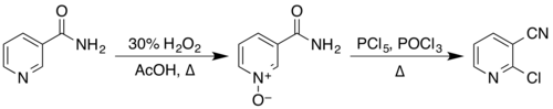 - ^ Taylor EC, Crovetti AJ (1957). "2-Chloronicitinonitrile". Organic Syntheses. 37: 12. doi:10.15227/orgsyn.037.0012; Collected Volumes, vol. 4, p. 166.