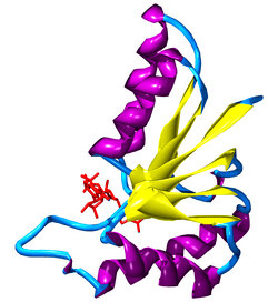 There are many different superfamilies of enzymes that bind NAD+ / NADH. One of the most common superfamilies includes a structural motif known as the Rossmann fold.[55][56] The motif is named after Michael Rossmann, who was the first scientist to notice how common this structure is within nucleotide-binding proteins.[57]