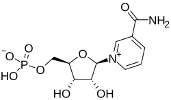 Nicotinamide mononucleotide ("NMN" and "β-NMN") is a nucleotide derived from ribose, nicotinamide, nicotinamide riboside and niacin. In humans, several enzymes use NMN to generate nicotinamide adenine dinucleotide (NADH).[1] In mice, it has been proposed that NMN is absorbed via the small intestine within 10 minutes of oral uptake and converted to nicotinamide adenine dinucleotide (NAD+ form)[2] through the Slc12a8 transporter.[3] However, this observation has been challenged,[4] and the matter remains unsettled.[5]