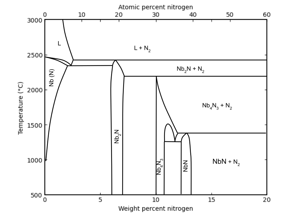 | Nb (solid solution) | 0 to <3 | cI2 | Im3m | bcc Nb with small N solubility |