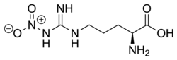 Nitroarginine, or Nω-nitro-l-arginine, also known as L-NOARG, is a nitro derivative of the amino acid arginine.[1] It is an inhibitor of nitric oxide synthase and hence a vasoconstrictor. As such, it finds widespread use as a biochemical tool in the study of nitric oxide and its biological effects.[2]