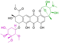 - ^ a b c Siitonen, V. et al. Identification of Late-Stage Glycosylation Steps in the Biosynthetic Pathway of the Anthracycline Nogalamycin. ChemBioChem 13, 120–128 (2011).