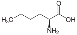 Norleucine[a] (abbreviated as Nle) is an amino acid with the formula CH3(CH2)3CH(NH2)CO2H. A systematic name for this compound is 2-aminohexanoic acid. The compound is an isomer of the more common amino acid leucine. Like most other α-amino acids, norleucine is chiral. It is a white, water-soluble solid.