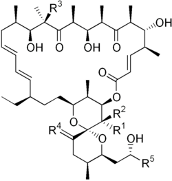 - ^ Nakata M, Ishiyama T, Akamatsu S, Hirose Y, Maruoka H, Suzuki R, Tatsuta K (1995). "Synthetic studies on oligomycins. Synthesis of the oligomycin B spiroketal and polypropionate portions". Bulletin of the Chemical Society of Japan. 68 (3): 967–89. doi:10.1246/bcsj.68.967.