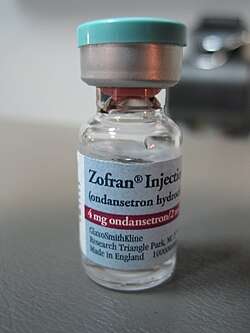 Ondansetron, sold under the brand name Zofran among others, is a medication used to prevent nausea and vomiting caused by chemotherapy, radiation therapy, migraines, or surgery.[8] It is also effective for treating gastroenteritis.[9][10] It can be given orally (by mouth), intramuscularly (injection into a muscle), or intravenously (injection into a vein).[8]