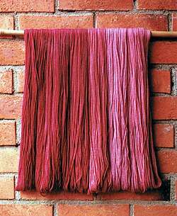 Cudbear is a dye extracted from orchil lichens that produces colours in the purple range. It can be used to dye wool and silk, without the use of mordant. The lichen is first boiled in a solution of ammonium carbonate. The mixture is then cooled and ammonia is added and the mixture is kept damp for 3–4 weeks. Then the lichen is dried and ground to powder.