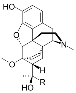 - ^ Bentley KW, Hardy DG, Meek B (June 1967). "Novel analgesics and molecular rearrangements in the morphine-thebaine group. IV. Acid-catalyzed rearrangements of alcohols of the 6,14-endo-ethenotetrahydrothebaine series". Journal of the American Chemical Society. 89 (13): 3293–3303. Bibcode:1967JAChS..89.3293B. doi:10.1021/ja00989a033. PMID 6042765.
