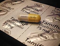 - ^ Kaiser L, Wat C, Mills T, Mahoney P, Ward P, Hayden F (July 2003). "Impact of oseltamivir treatment on influenza-related lower respiratory tract complications and hospitalizations". Archives of Internal Medicine. 163 (14): 1667–72. doi:10.1001/archinte.163.14.1667. PMID 12885681.