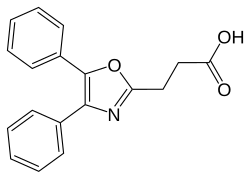 - ^ Brown K, Cavalla JF, Green D, Wilson AB (July 1968). "Diaryloxazole and diarylthiazolealkanoic acids: two novel series of non-steroidal anti-inflammatory agents". Nature. 219 (5150): 164. Bibcode:1968Natur.219..164B. doi:10.1038/219164a0. PMID 5301713. S2CID 4214027.