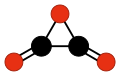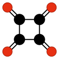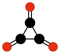 Another family of oxocarbons that has attracted special attention are the cyclic radialene-type oxocarbons CnOn or (CO)n.[27] They can be regarded as cyclic polymers of carbon monoxide, or n-fold ketones of n-carbon cycloalkanes. Carbon monoxide itself (CO) can be regarded as the first member. Theoretical studies indicate that ethylene dione (C2O2 or O=C=C=O) and cyclopropanetrione C3O3 do not exist.[17][18] The next three members — C4O4, C5O5, and C6O6 — are theoretically possible, but are expected to be quite unstable,[18] and so far they have been synthesized only in trace amounts.[28][29]