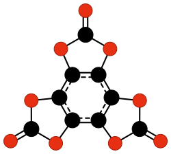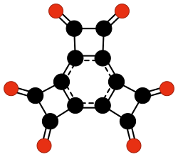 - C24O6, a cyclic trimer of the biradical 3,4-dialkynyl-3-cyclobutene-1,2-dione -C≡C-(C4O2)-C≡C- (Rubin and others, 1990);[45]