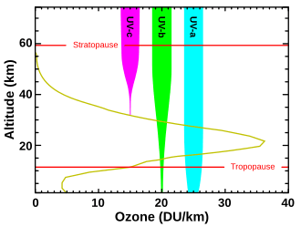 2 (dioxygen). Ozone is formed from dioxygen by the action of ultraviolet (UV) light and electrical discharges within the Earth's atmosphere. It is present in very low concentrations throughout the atmosphere, with its highest concentration high in the ozone layer of the stratosphere, which absorbs most of the Sun's ultraviolet (UV) radiation.