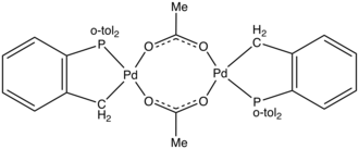 Herrmann's catalyst is made by reaction of palladium(II) acetate with tris(o-tolyl)phosphine.[17]