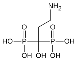 It is used to prevent bone loss, and treat osteoporosis. It is also used to strengthen bone in Paget's disease, to prevent bone loss due to steroid use, and in certain cancers with high propensity to bone, such as multiple myeloma. Due to its ability to sequester calcium in bone, it is also used to treat high calcium levels. It is also used as an experimental treatment of the bone disorder osteogenesis imperfecta. It has been studied in the treatment of complex regional pain syndrome.[2]