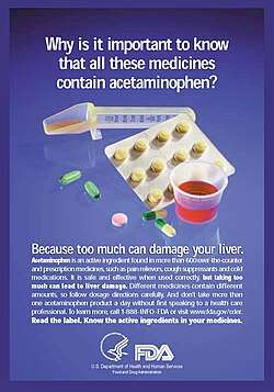 - ^ "FDA limits acetaminophen in prescription combination products; requires liver toxicity warnings". U.S. Food and Drug Administration (FDA) (Press release). 15 January 2011. Archived from the original on 15 January 2011. Retrieved 23 February 2014.
