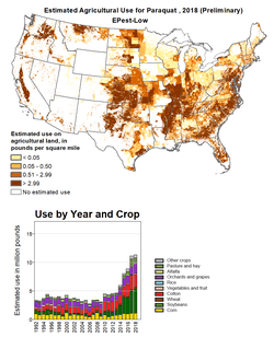 - ^ US Geological Survey (2021-10-12). "Estimated Agricultural Use for paraquat, 2018". Archived from the original on 2022-01-18. Retrieved 2022-01-17.