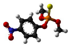 Parathion methyl, or methyl parathion, is an organophosphate insecticide, possessing an organothiophosphate group. It is structurally very similar to parathion-ethyl. It is not allowed for sale and import in nearly all countries around the world, while a few allow it under subject to specified conditions only.