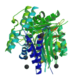 Pegaspargase is a modified version of the enzyme asparaginase which has undergone PEGylation.[8][6] It works by breaking down the amino acid asparagine that are circulating in the bloodstream.[6] The circulating asparagine is essential for the cancer cells to enable growth since they can't produce their own, in contrast to normal cells.[9] The normal cells are therefore less affected by pegaspargase.