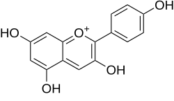 Pelargonidin is an anthocyanidin, a type of plant pigment producing a characteristic orange color used in food and industrial dyes.[1]