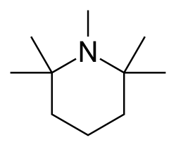 Two early syntheses of this compound are those of Leonard and Hauck,[5] and Hall.[4] These are very similar in principle: Leonard and Hauck reacted phorone with ammonia, to produce 2,2,6,6-tetramethyl-4-piperidone, which was then reduced by means of the Wolff–Kishner reduction to 2,2,6,6-tetramethylpiperidine. This secondary amine was then N-methylated using methyl iodide and potassium carbonate.[6]