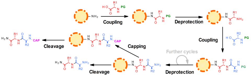 Solid-phase peptide synthesis (PG – protecting group)