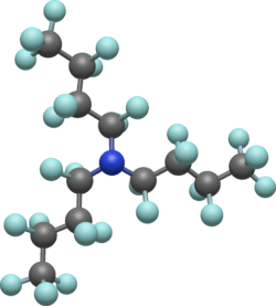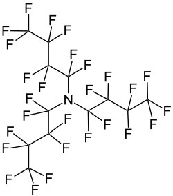 Perfluorotributylamine (PFTBA), also referred to as FC43, is an organic compound with the chemical formula N(CF2CF2CF2CF3)3. It is a colorless liquid. A molecule of this chemical compound consists of three butyl groups connected to one nitrogen atom, in which all of the hydrogen atoms are replaced with fluorine atoms. The compound is produced for the electronics industry, along with other perfluoroalkylamines. The high degree of fluorination significantly reduces the basicity of the central amine due to electron-withdrawing effects.[1]