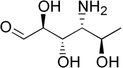 Its biosynthesis from mannose-1-phosphate follows a pathway similar to that of colitose, but is different in that it is aminated and does not undergo 3-OH deoxygenation or C-5 epimerization.[3]