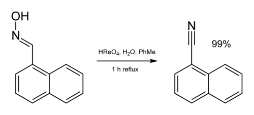 - ^ Ishihara, K.; Furuya, Y.; Yamamoto, H. (2002). "Rhenium(VII) Oxo Complexes as Extremely Active Catalysts in the Dehydration of Primary Amides and Aldoximes to Nitriles". Angewandte Chemie International Edition. 41 (16): 2983–2986. doi:10.1002/1521-3773(20020816)41:16<2983::AID-ANIE2983>3.0.CO;2-X. PMID 12203432.