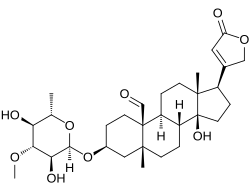 | Other names | (3S,5R,10R,13R,14S,17R)- 3-[(2S,5R)- 3,5-dihydroxy- 4-methoxy- 6-methyloxan- 2-yl]oxy- 14-hydroxy- 13-methyl- 17-(5-oxo-2H-furan-3-yl)- 1,2,3,4,5,6,7,8,9,11,12,15,16,17- tetradecahydrocyclopenta[a]phenanthrene- 10-carbaldehyde |