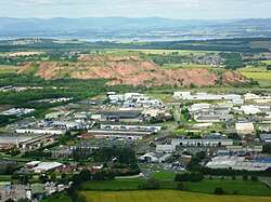 Shale bings near Broxburn, three of a total of 19 in West Lothian, Scotland