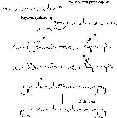 Phaseic acid is an isoprenoid, which means that it is derived from isoprene units. The activated terpene geranylgeranyl pyrophosphate is combined with itself to produce the common carotenoid precursor, lycopene.