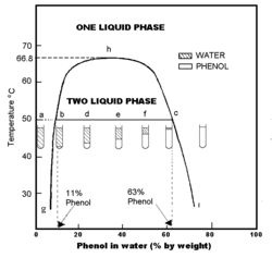 Phenol is an organic compound appreciably soluble in water, with about 84.2 g dissolving in 1000 ml (0.895 M). Homogeneous mixtures of phenol and water at phenol to water mass ratios of ~2.6 and higher are possible. The sodium salt of phenol, sodium phenoxide, is far more water-soluble. Phenol is a combustible solid (NFPA rating = 2). When heated, phenol produces flammable vapors that are explosive at concentrations of 3 to 10% in air. Carbon dioxide or dry chemical extinguishers should be used to fight phenol fires.[5]