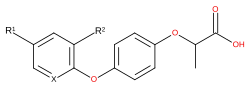 Haloxyfop: X=N, R1=CF3, R2=Cl