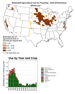 - ^ US Geological Survey (2021-10-12). "Estimated Agricultural Use for Fluazifop, 2018". Retrieved 2021-12-27.