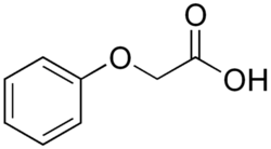 The first group to be discovered act by mimicking the auxin growth hormone indoleacetic acid (IAA).[1] When sprayed on broad-leaf plants they induce rapid, uncontrolled growth ("growing to death"). Thus when applied to monocotyledonous crops such as wheat or maize (corn), they selectively kill broad-leaf weeds, leaving the crops relatively unaffected.