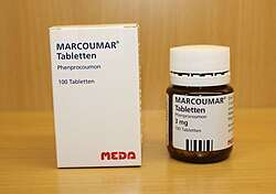 - ^ a b c d e f g h i j k l m n Haberfeld H, ed. (2021). Austria-Codex (in German). Vienna: Österreichischer Apothekerverlag. Marcoumar-Tabletten. Text available here Archived 2022-08-01 at the Wayback Machine.