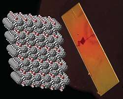 ![]() PCBM crystal and its model. Gray: carbons, red: oxygens, white: hydrogens.