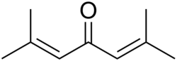 Phorone, or diisopropylidene acetone, is a yellow crystalline substance with a geranium odor, with formula C9H14O or ((CH3)2C=CH)2C=O.