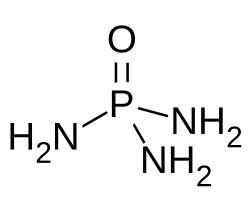 Phosphoramide is a chemical compound with the molecular formula O=P(NH2)3. It is a derivative of phosphoric acid in which each of the hydroxyl groups have been replaced with an amino group. In bulk, the compound is a white solid which is soluble in polar solvents.