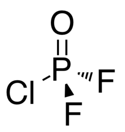 Phosphoric chloride difluoride POF2Cl is a colourless gas. At one atmosphere pressure the gas condenses to a liquid at 3.1 °C and freezes at −96.4.[3] Alternate names are difluorophosphoryl chloride[3] or phosphoryl chloride difluoride.