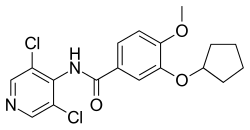 Piclamilast (RP 73401), is a selective PDE4 inhibitor.[1] It is comparable to other PDE4 inhibitors for its anti-inflammatory effects. It has been investigated for its applications to the treatment of conditions such as chronic obstructive pulmonary disease, bronchopulmonary dysplasia and asthma. It is a second generation compound that exhibits structural functionalities of the PDE4 inhibitors cilomilast and roflumilast. The structure for piclamilast was first elucidated in a 1995 European patent application.[2] The earliest mention of the name "piclamilast" was used in a 1997 publication.[3]