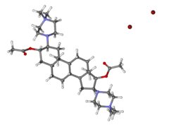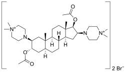 Pipecuronium (Arduan) is a bisquaternary aminosteroid muscle relaxant[1] which blocks nicotinic acetylcholine receptors[2][3] at the neuromuscular junction. It is also an antagonist of M2 and M3 muscarinic receptors[2] and is the most potent neuromuscular blocking agent of the aminosteroid class.