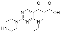 Pipemidic acid is a member of the pyridopyrimidine class of antibacterials, which display some overlap in mechanism of action with analogous pyridone-containing quinolones. It was introduced in 1979 and is active against gram negative and some gram positive bacteria. It was used for gastrointestinal, biliary, and urinary infections.[1] The marketing authorization of pipemidic acid has been suspended throughout the EU.[2]